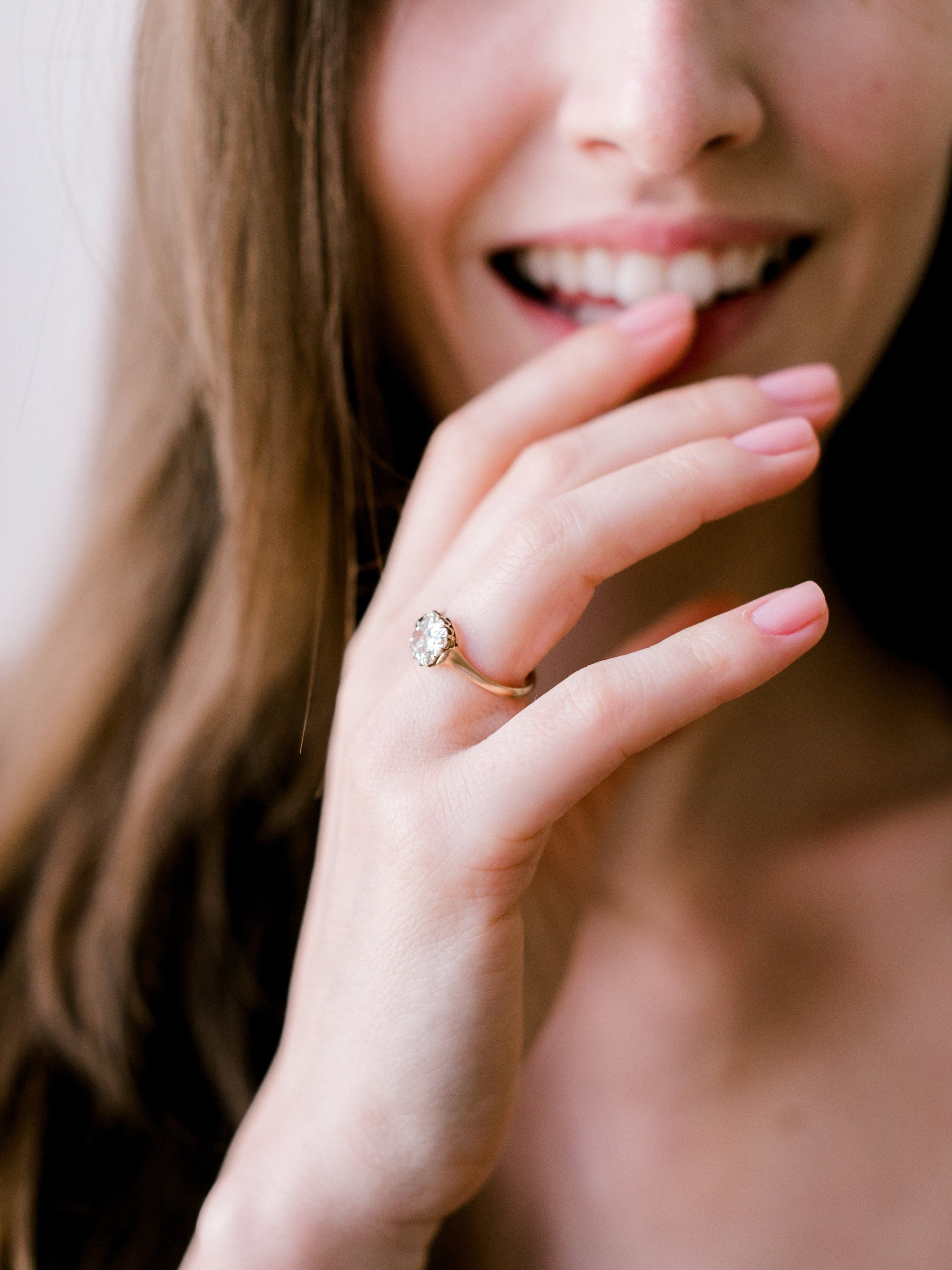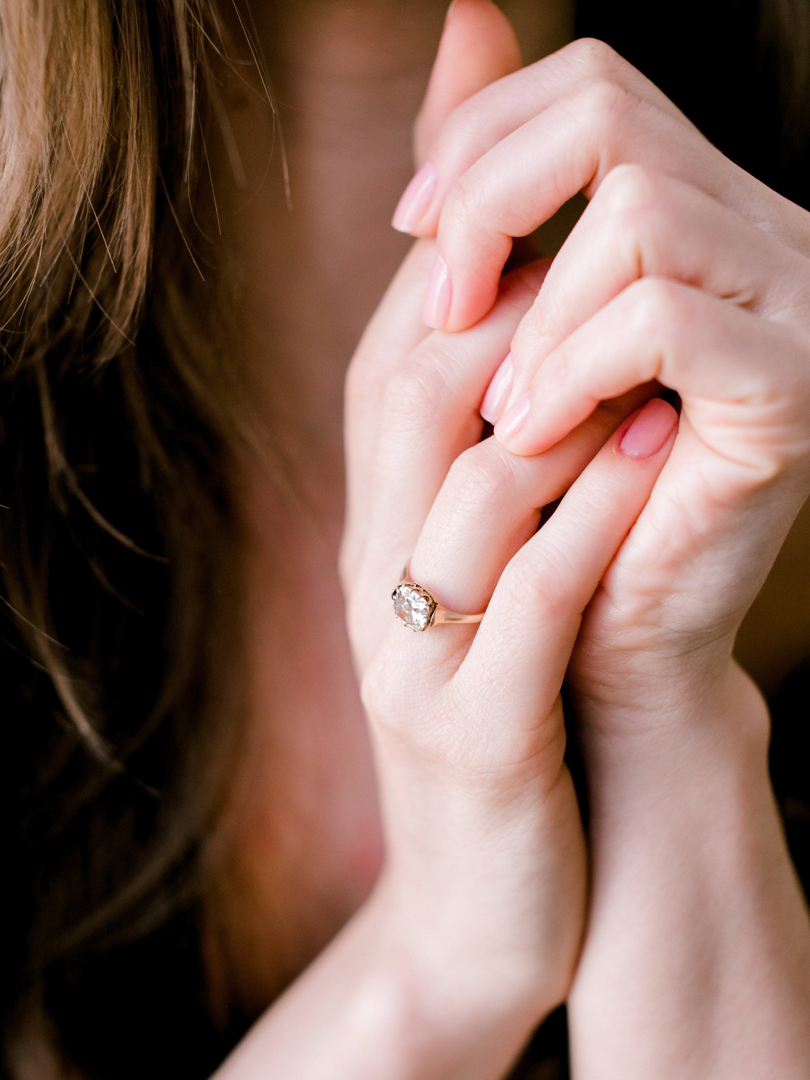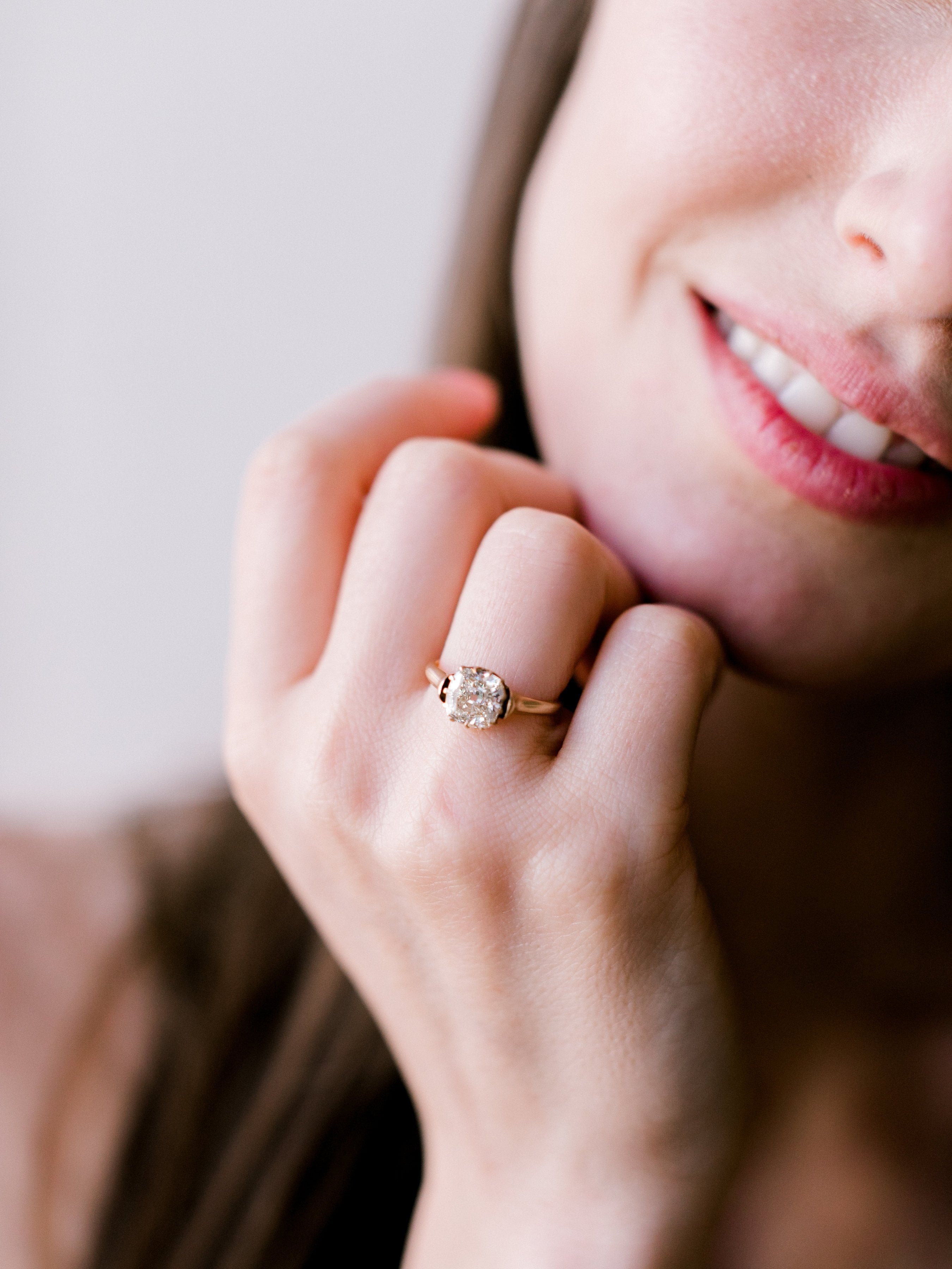 The diamond in this ring has such a unique cut with a gorgeous warmth! A simple ring with small details that make it distinctly one-of-a-kind!