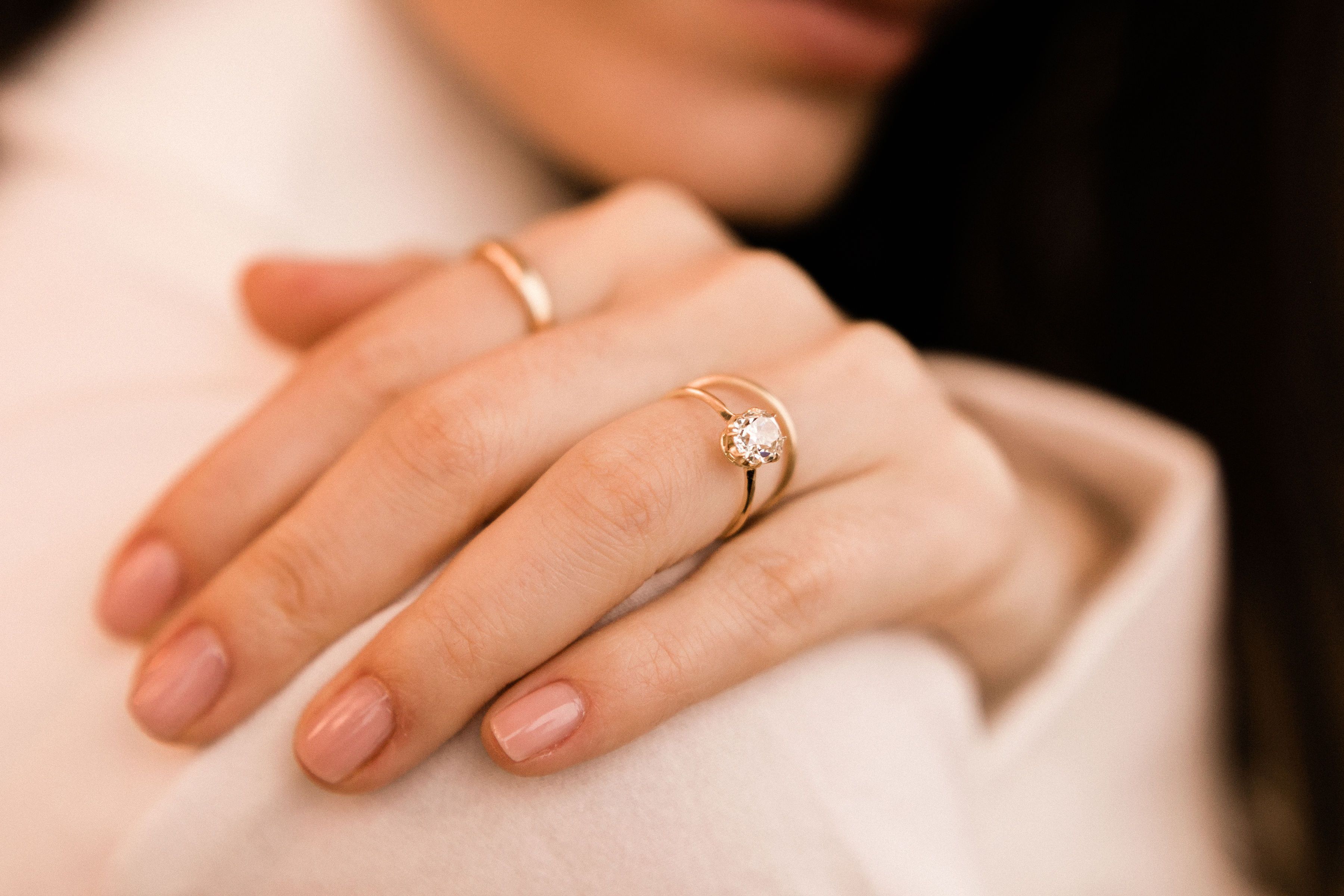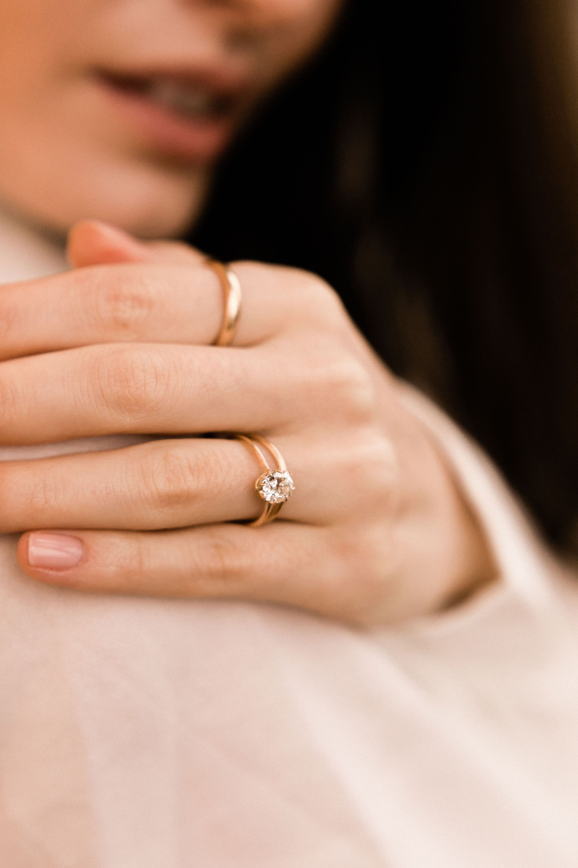The diamond in this ring is perfectly faceted and very brilliant! The ring is very elegant in its simplicity! She pairs well with bands too!