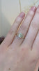 The dimensions of the center stone are 7.43 x 7.03 x 5.04 mm.