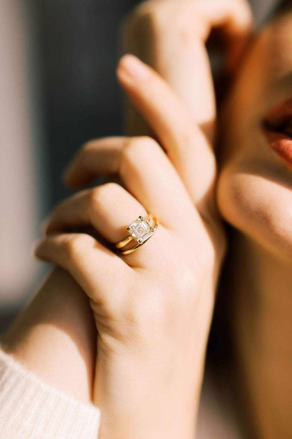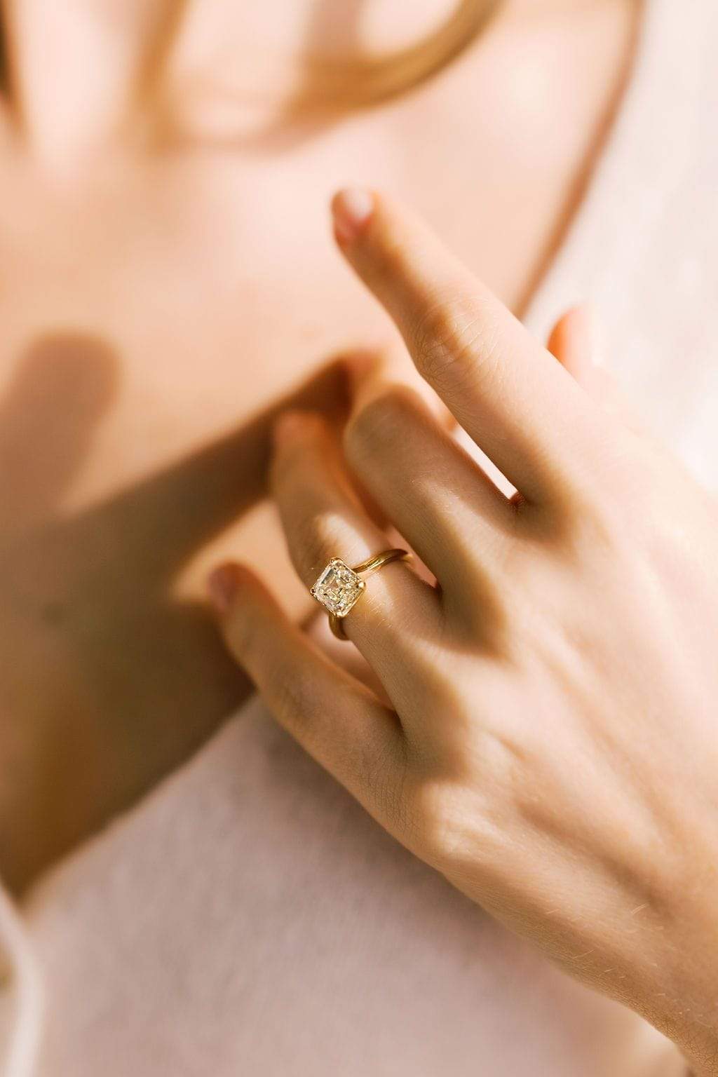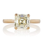 We kept the ring super simple for this beautiful stone. This diamond has those classic Asscher facets that really draw your eye into the stone. The ring is super stackable so you can pair it with a bold diamond band or lots of thin bands!