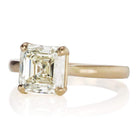 The Hallie 2.59 ring is an original VB design made here in NYC using a gorgeous antique diamond. The ring centers a GIA certified 2.59-carat Asscher cut diamond of O-P color, VVS2 clarity. The stone is set in a 4-prong 18-karat yellow gold setting. The ring is currently size 5.5 and can be resized!