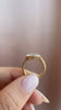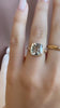 This gorgeous ring combines two of our favorite things; finger coverage, and a super low profile. The unique faceting pattern and slightly light green color make this a very rare find that we don't often see.
