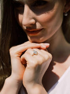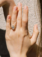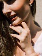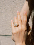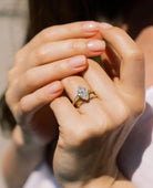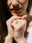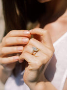 The Mitch Ring is a vintage-inspired VB-made diamond engagement ring. The ring centers a GIA certified 2.52 Marquise cut diamond of M color, VS2 clarity. The diamond is set in a 4-prong 18kt yellow gold setting with 3 old European cut diamonds set into each shoulder. The ring is currently size 6 and can be resized!