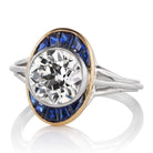 A sleek piece inspired by a 1920s antique piece we once had. The center stone is a bright and lively OEC that pairs beautifully with the vibrant blues of the sapphire in this chic oval layout.