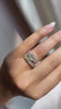 The Marielle 2.09 ring is a VB original design made right here in NYC. The ring centers a GIA-certified 2.09-carat old mine cut diamond of M color, SI1 clarity. The stone is set in a 10-prong 18kt yellow gold setting. An old mine cut diamond is set to either side of the center stone, both combining for 0.94 carats. The ring is currently size 6.25 and can be resized!