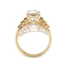The Camille 3.52 ring is an AB original design. The ring centers a GIA-certified 3.52-carat Old Mine Cut diamond of J color, SI1 clarity. The stone is set in a 4-prong setting of our signature 18kt yellow gold with three vertical baguettes bezel-set to each side of the center stone. The ring is currently size 5.75 and can be resized!