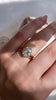 This stone is an amazing antique find! A hybrid of an old mine cut, a kite, and an oval for a one of a kind find with a more organic shape. We set this bright and vibrant stone in a clean and minimal 6-prong yellow gold ring so as not to distract from the stone's uniqueness!