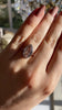 Pink and brown diamonds are very closely related and often originate from the famed Argyle mine. We certainly love our brown diamonds but this beautiful diamond is definitely giving off more pink hues. We set it in a way to really bring out those beautiful pink tones which pop against the silvery platinum. The shape of this diamond is our ideal Moval (marquise plus oval) with a long, elegant outline and beautiful antique facets. We consider ourselves very lucky to have acquired this rare beauty!