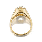 A bold golden ring that is so sleek and definitely makes a statement! We chose a chunky, dreamy diamond with the perfect gold hues to center this low-profile, chic number.