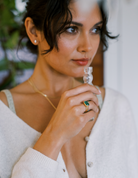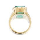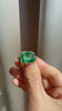 A bright and vibrant Emerald centers this chunky, golden number. A Victorian-inspired beauty that makes a statement or stacked with bands for a look that is all your own.