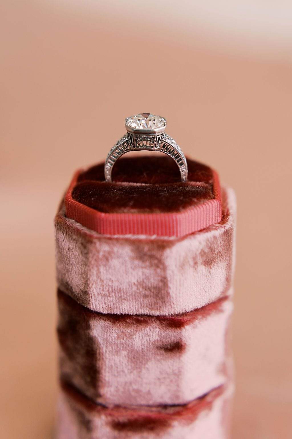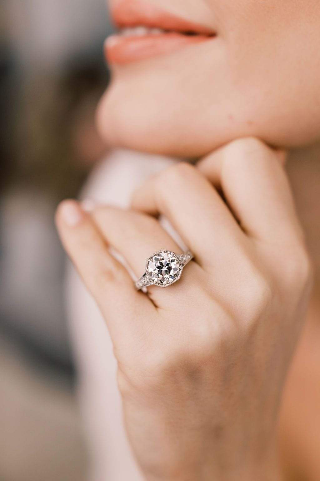 Aside from a beyond gorgeous diamond, the details on this ring make it super unique and lovely. The filigree details are perfectly dainty and crisp and the linear themes are classic of the Art Deco Era.