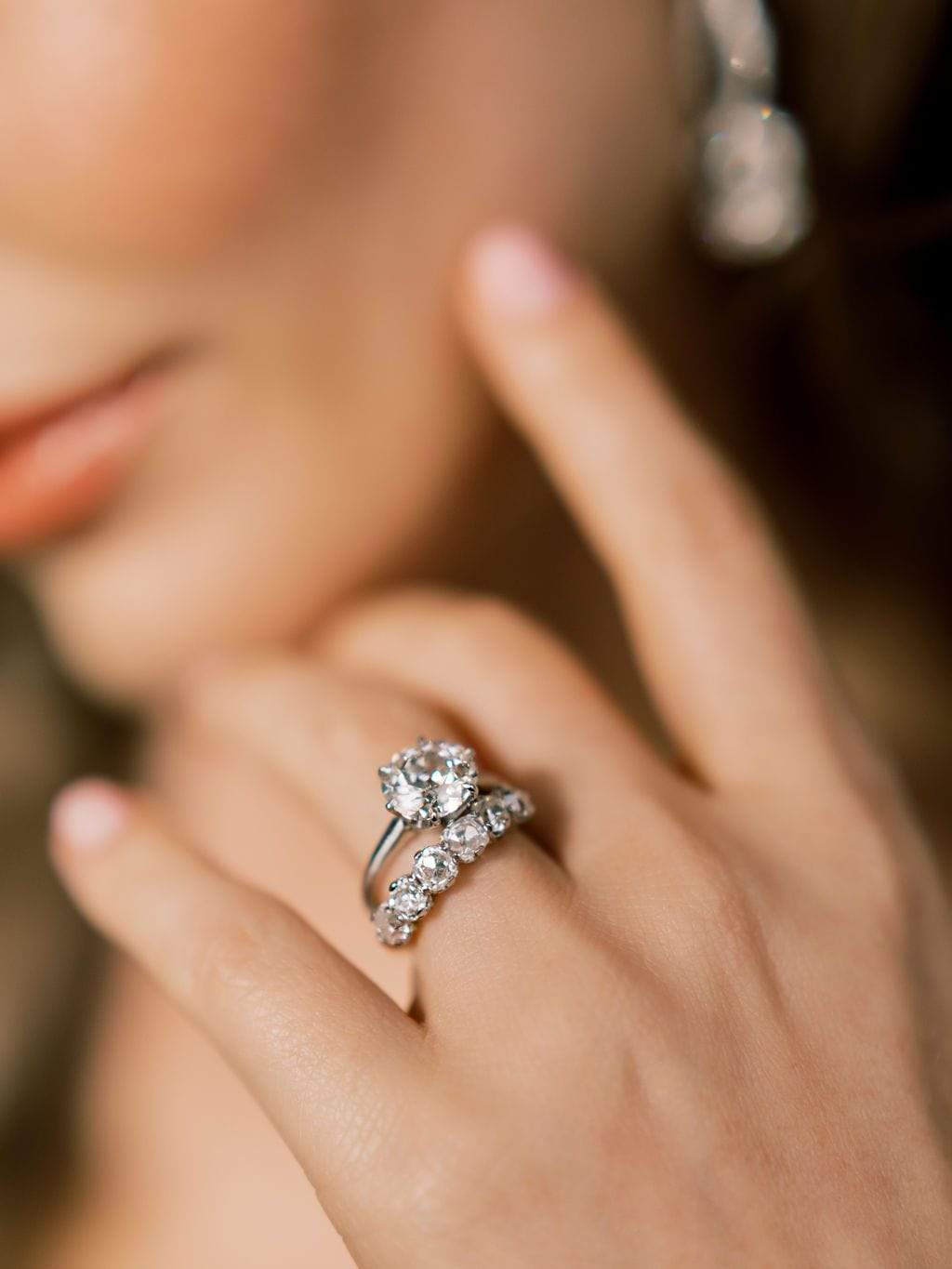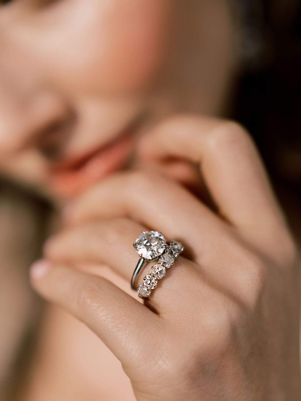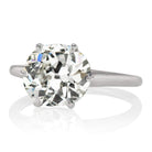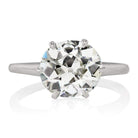 This stone is such a beauty and a great find! A 3+ carat old mine cut of a bright white color and great clarity set simply and chicly in an E-W style that stack beautifully with bands!