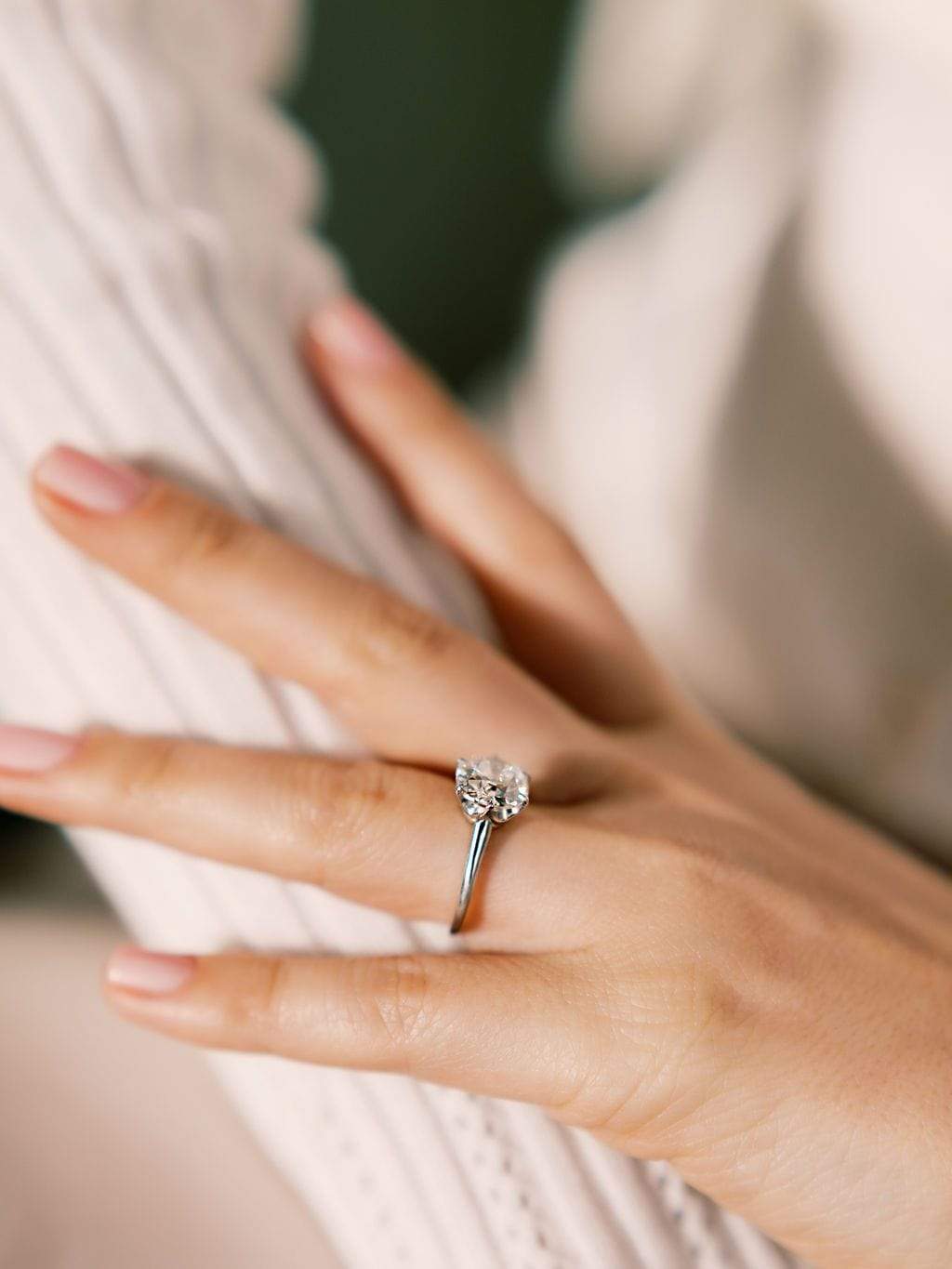 The Avery 3.12 ring is an original VB design made right here in NYC using an authentically antique diamond. The ring centers a GIA certified 3.12-carat old mine cut diamond of I color, VS2 clarity. The stone is set East-West in a 6-prong platinum setting. The ring is currently size 6 and can be resized!