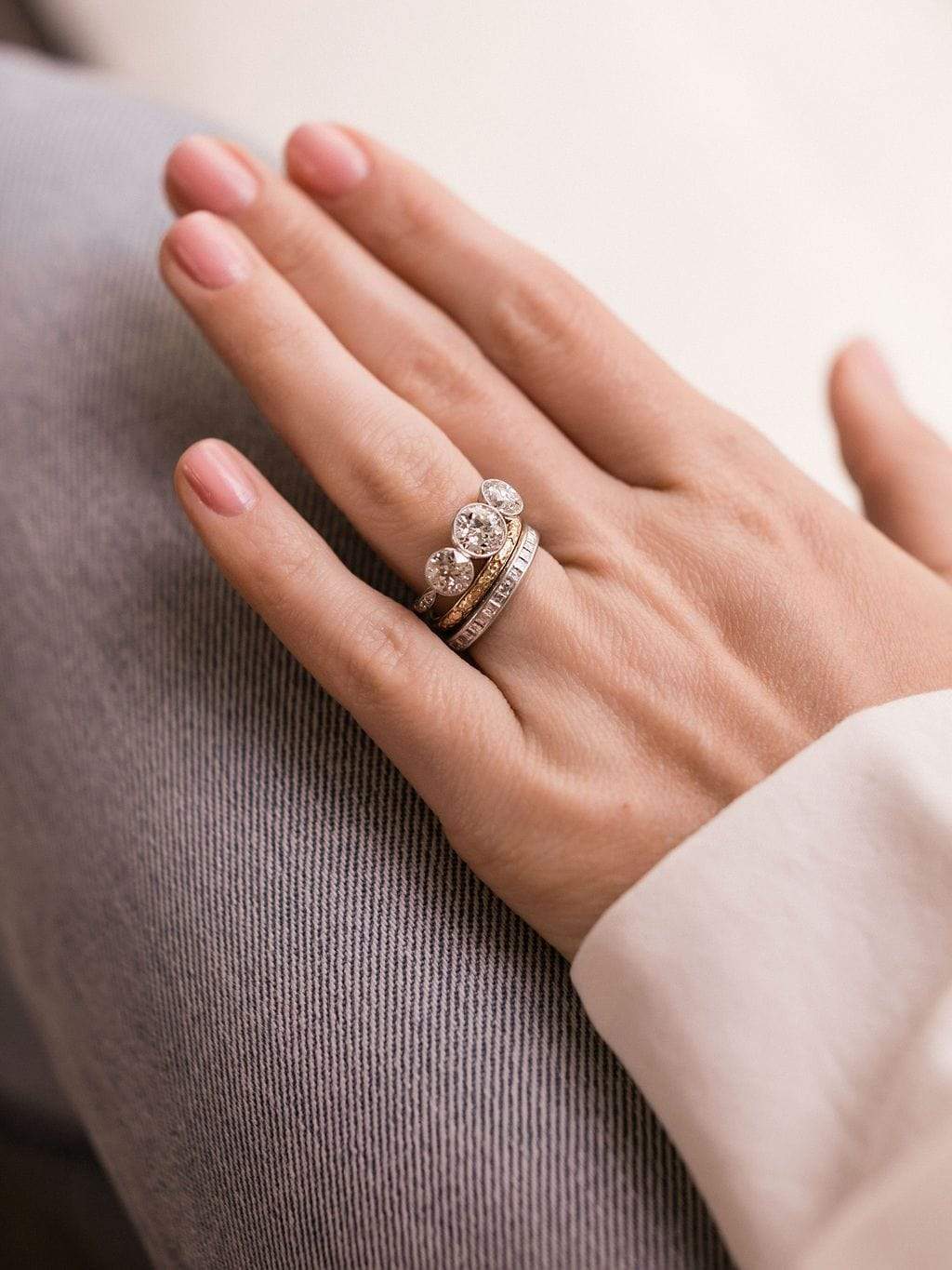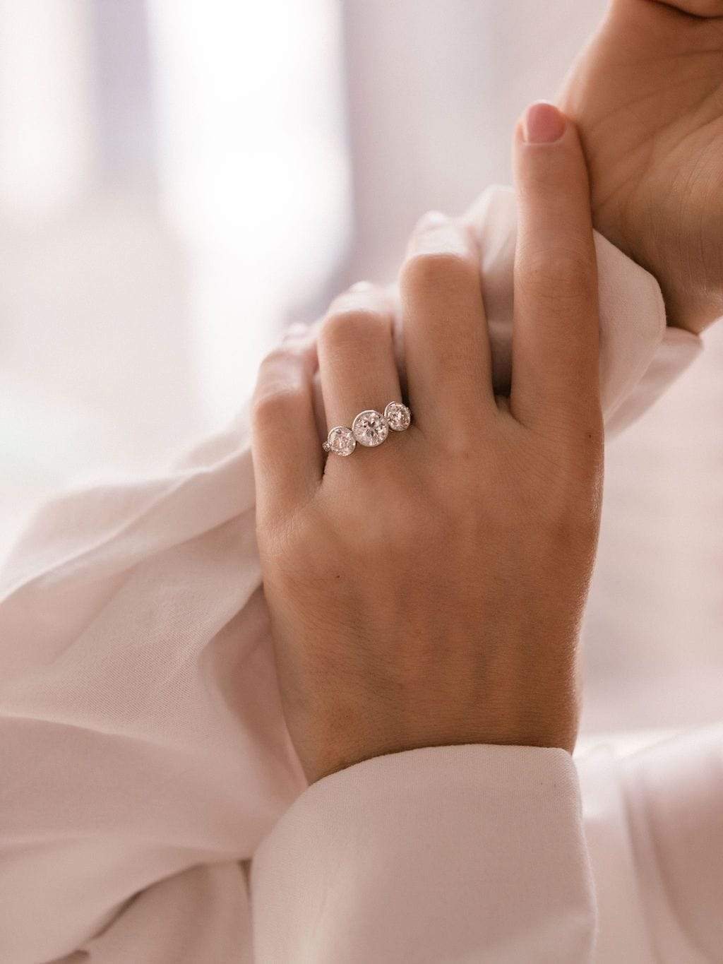 3 Diamond Bezel Set Engagement Ring