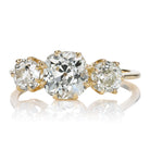 3 Stone Old Mine Cut Engagement Ring in Yellow Gold Setting