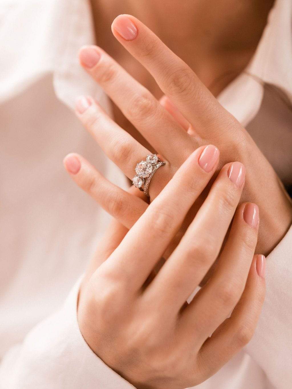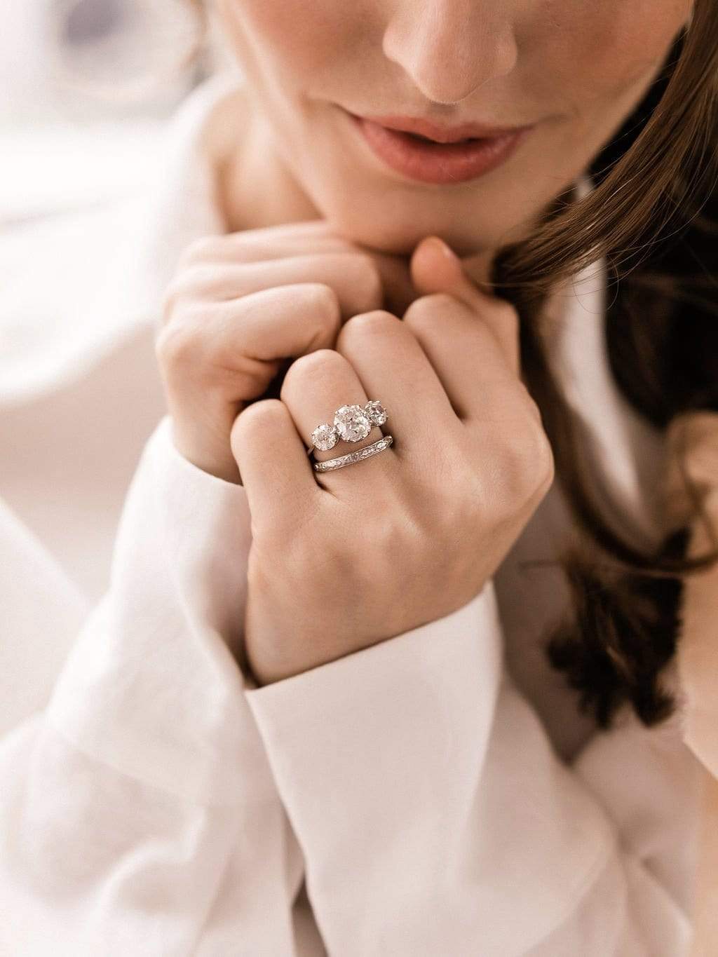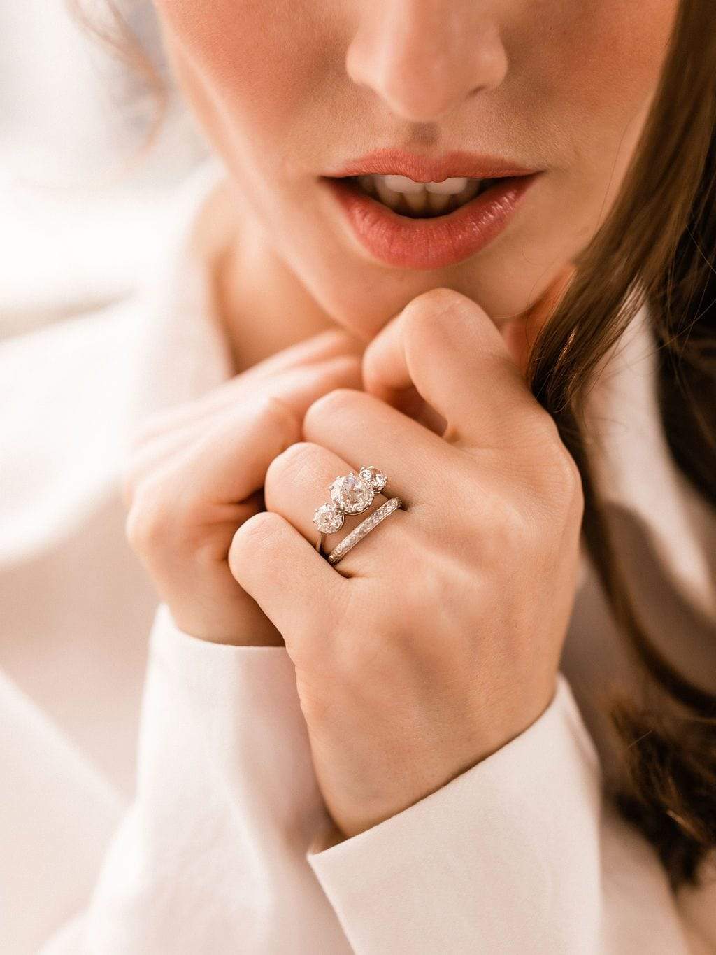 Our ever-popular Marielle ring has now been made in platinum! Three gorgeous antique diamonds that spread the finger beautifully with a delicate setting!