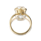 The Allie 4.74 ring is an AB original design made right here in NYC. The ring centers a GIA-certified 4.74 carat Old Mine Cut diamond of O-P color, SI2 clarity. The stone is set in an 18kt Yellow Gold collet setting. The ring is currently size 6 and can be resized!