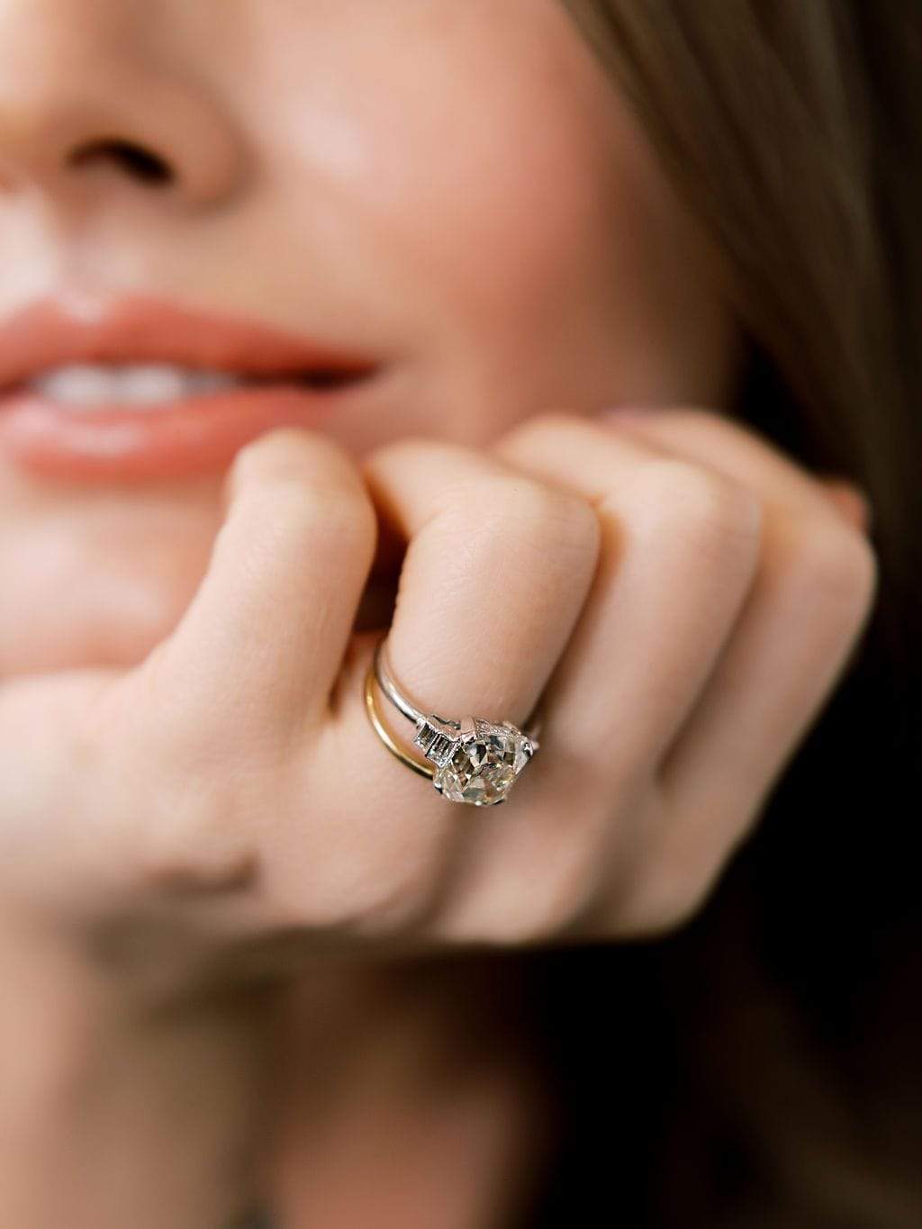 This diamond is extraordinary. We love the chunky step cuts such as this one that really draw your eye into the depths of the beautiful stone. The diamond has a light warmth that is just beautiful in this sleek, Art Deco style setting.