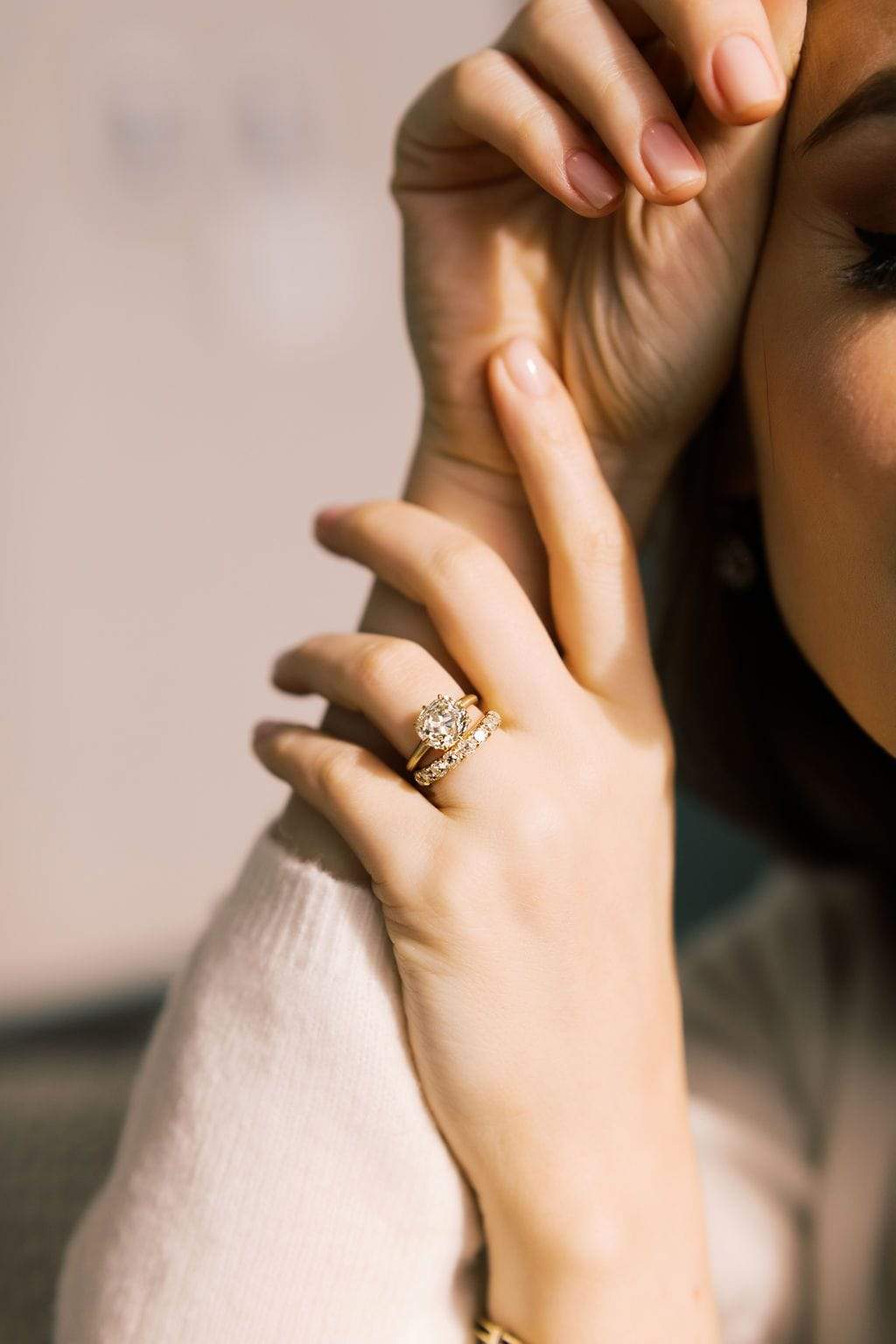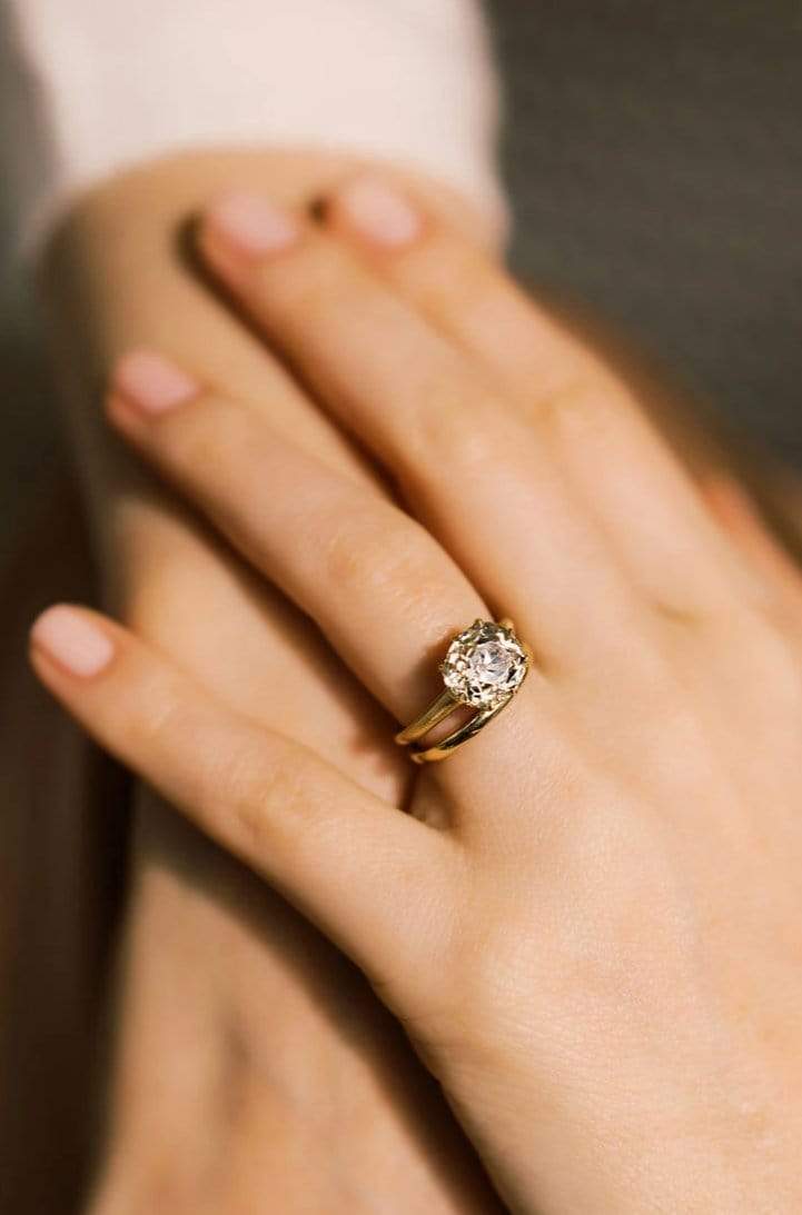 We just adore this super chunky, super beautiful old mine cut diamond. It has a warm glow to it and beautiful faceting. We set it E-W for a chic, contemporary feel that blends old and new worlds and makes it very easy to stack with.