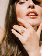 The Rosaria 1.96 ring is a vintage-inspired VB-made diamond engagement ring. The ring centers a GIA certified 1.96 carat old mine cut diamond of I color, VS2 clarity. The diamond is set in a 4-prong 18kt yellow gold setting with prongs in the NSEW orientation. Three small old European cut diamonds decorate each shoulder! The ring is currently size 6 and can be resized!