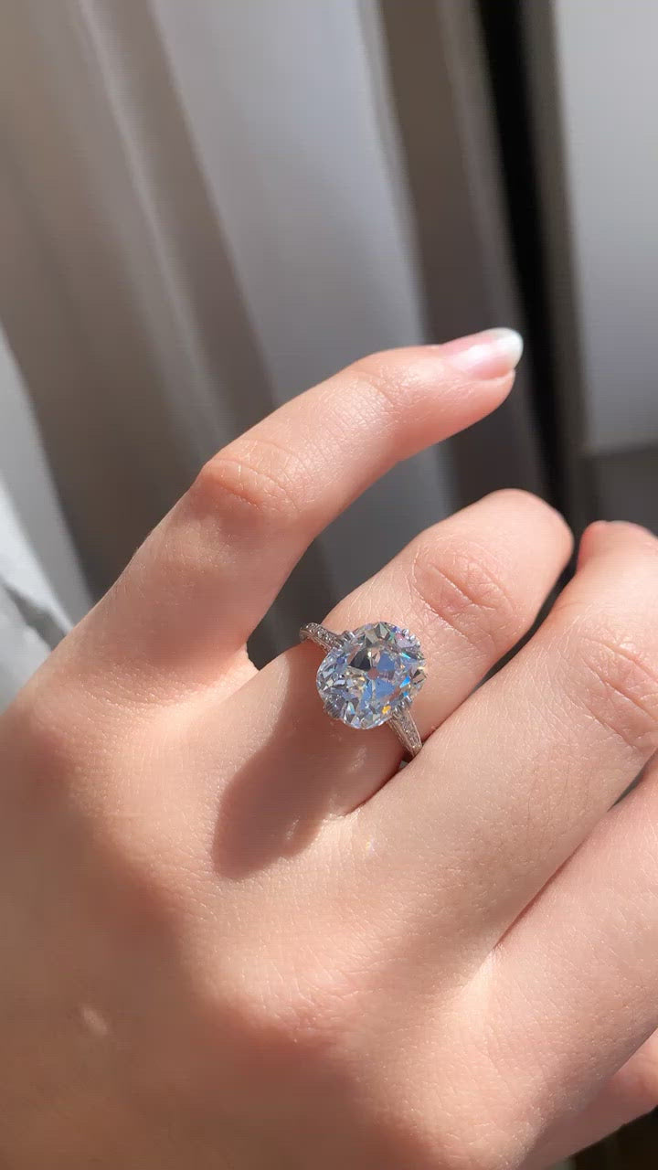 5.34 ct Elongated Old Mine Cut Diamond Engagement Ring