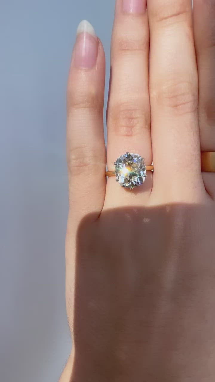 5.52 carat Gorgeous Elongated Old Mine Cut Diamond in Two-Tone Setting