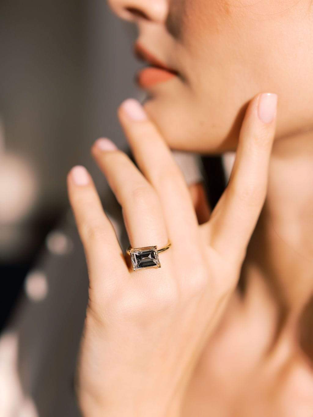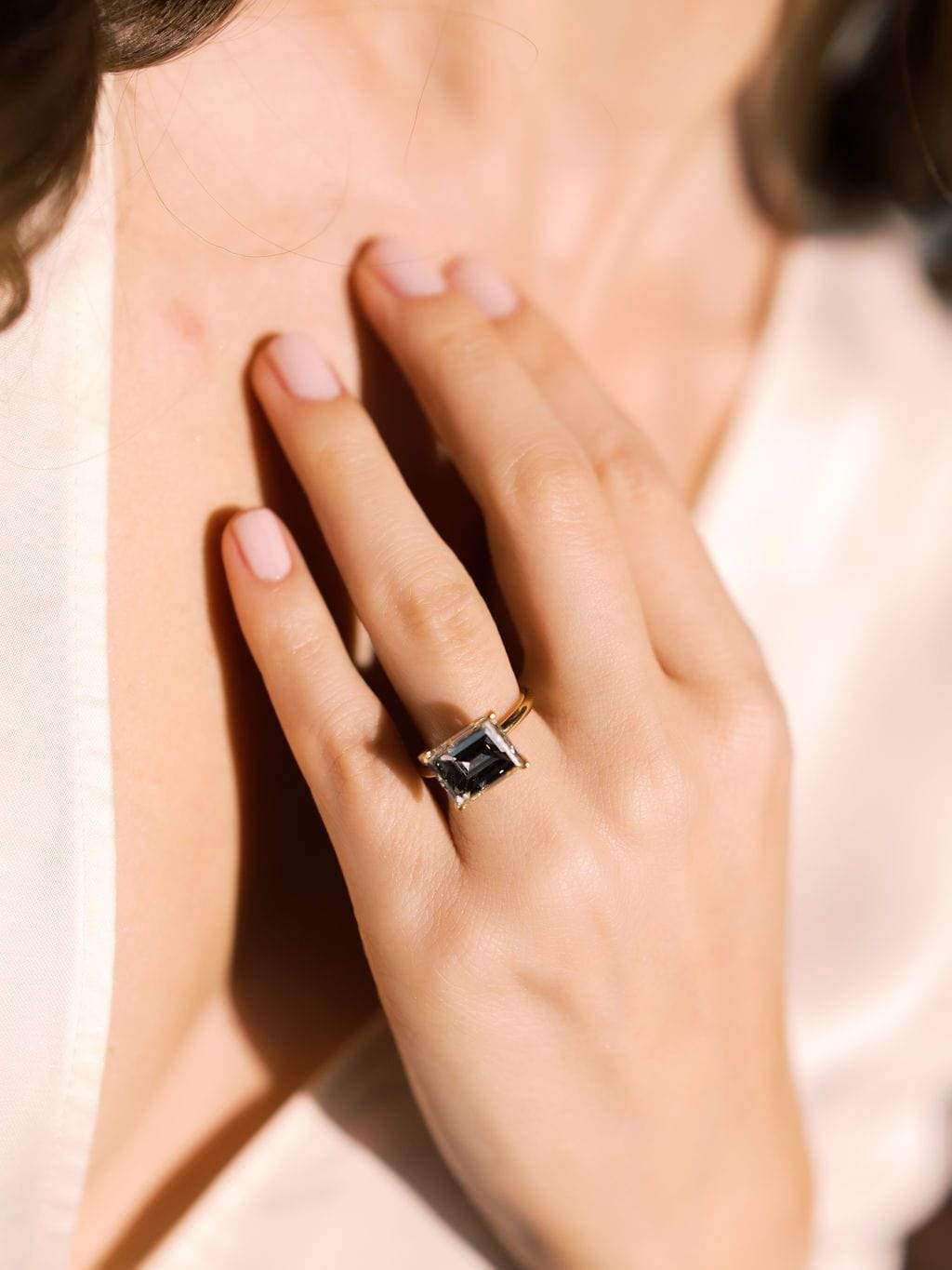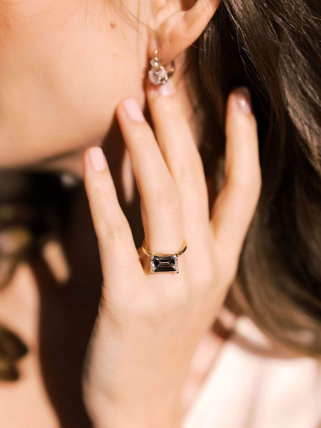 We are in love with this sleek, unique stone! The East-West setting makes it super chic and bold and ultra stackable.