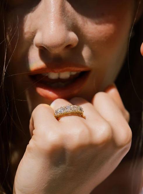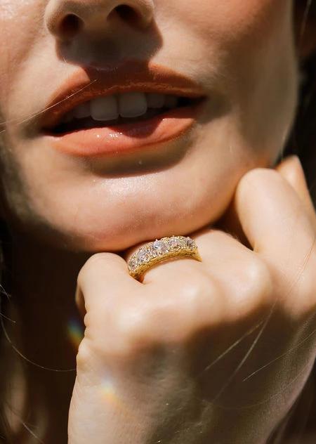 We love the sleek appeal of these five stone bands. Gorgeous antique diamonds span the finger for a chic engagement ring, a chunky wedding band, or the coolest right hand ring.