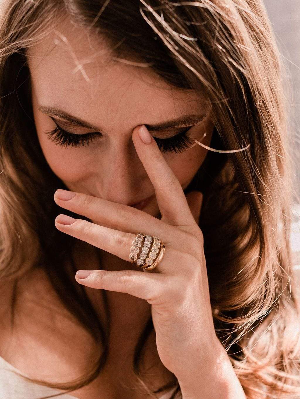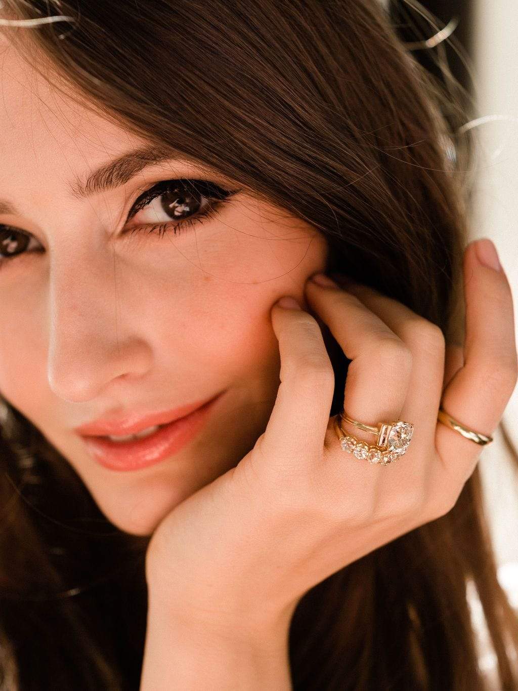 Loving these super chunky diamonds set in this creamy golden setting with delicate details to the prongs!