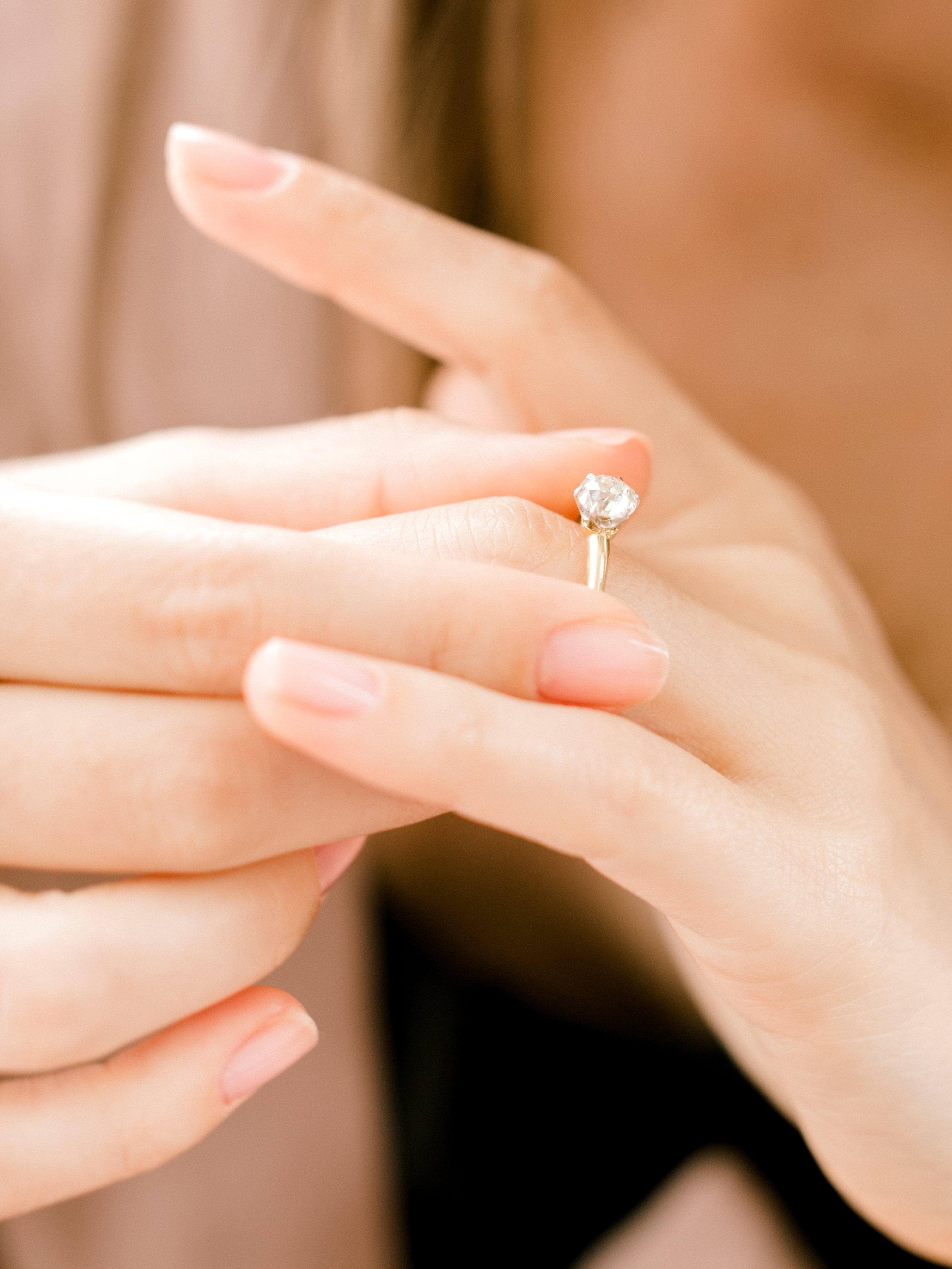 The old mine cut diamond in this ring is full of that good antique charm! A nice and deep stone for that look that just draws your eye in! The setting is simple and elegant and can be paired with any band!