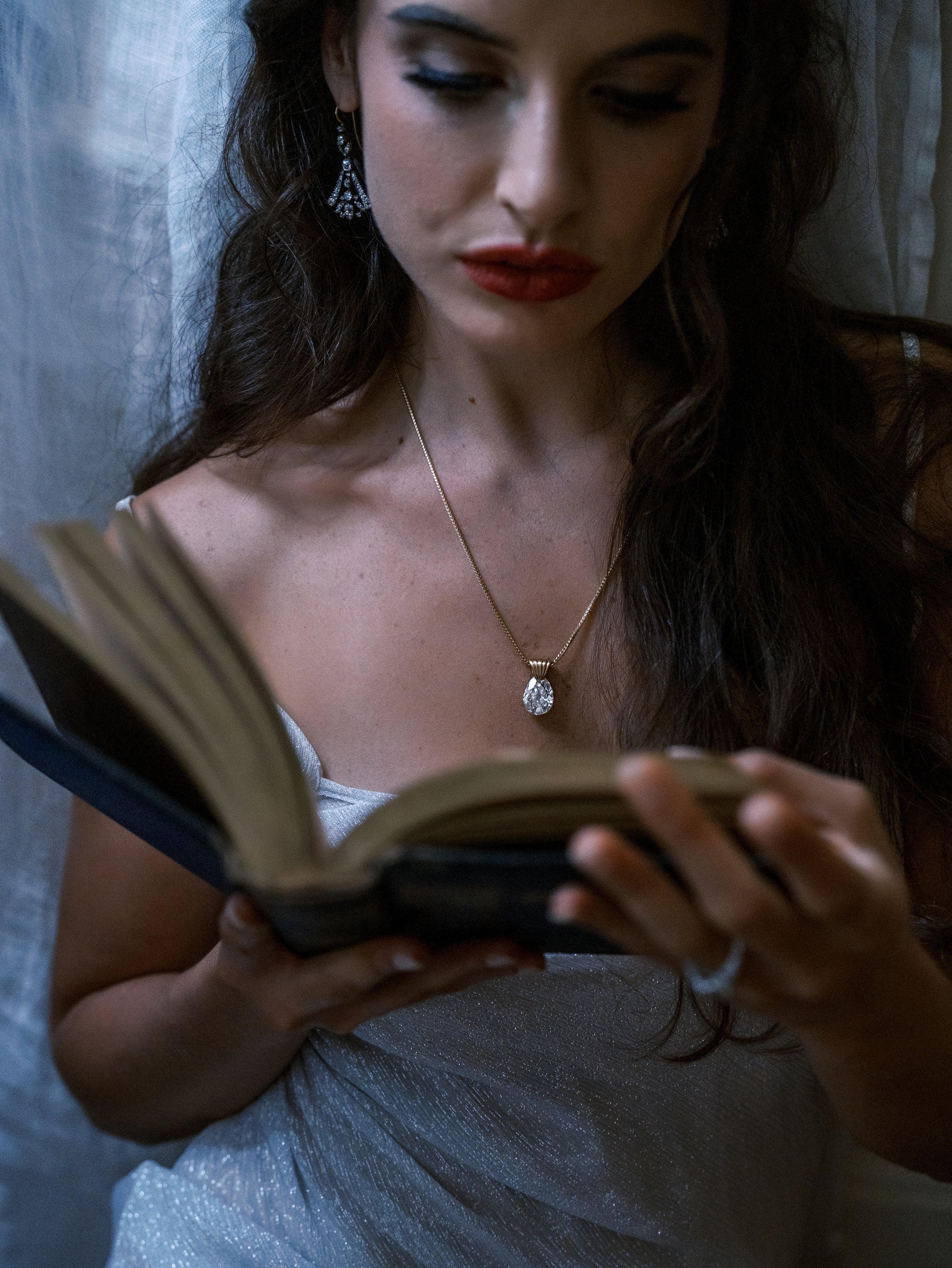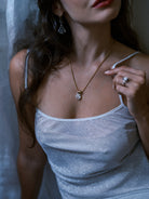 The Blythe pendant is an AB original made right here in NYC. The pendant features a GIA-certified 7.60-carat pear shaped briolette diamond of N color, I3 clarity. To take advantage of the briolette nature of this diamond, we set the grooved 18kt yellow gold bale through the hole at the top of the diamond! The pendant comes with an 18kt yellow gold chain as pictured!