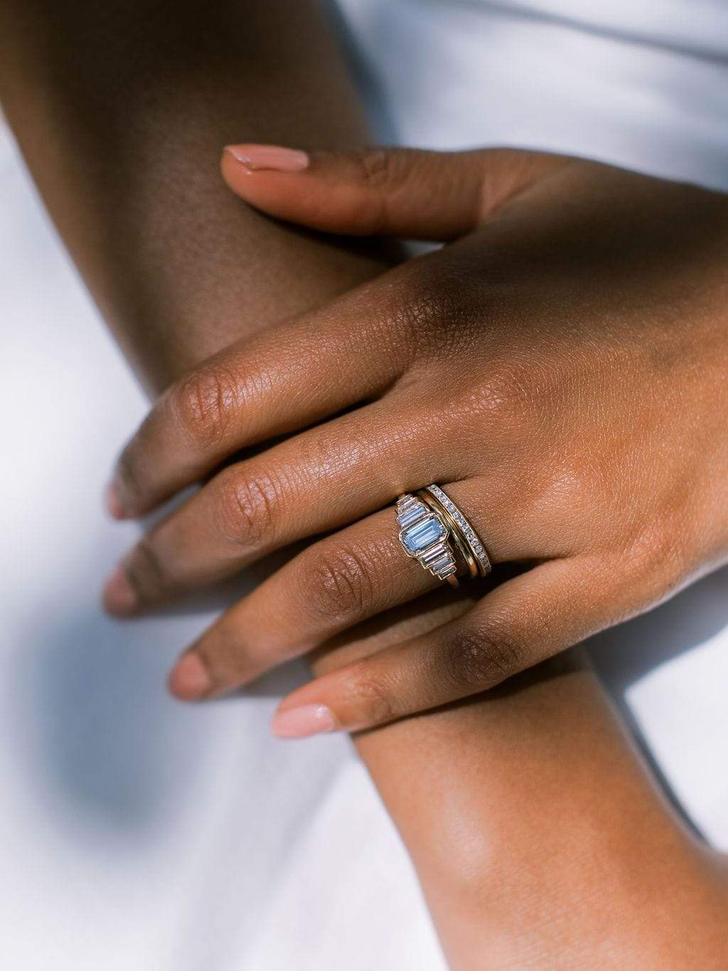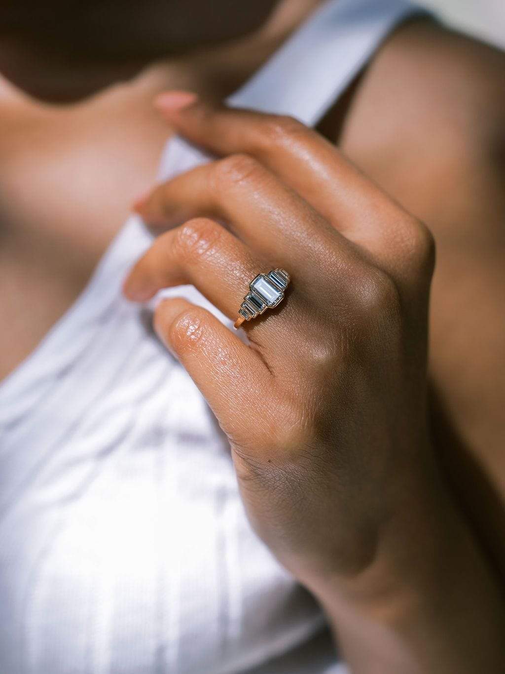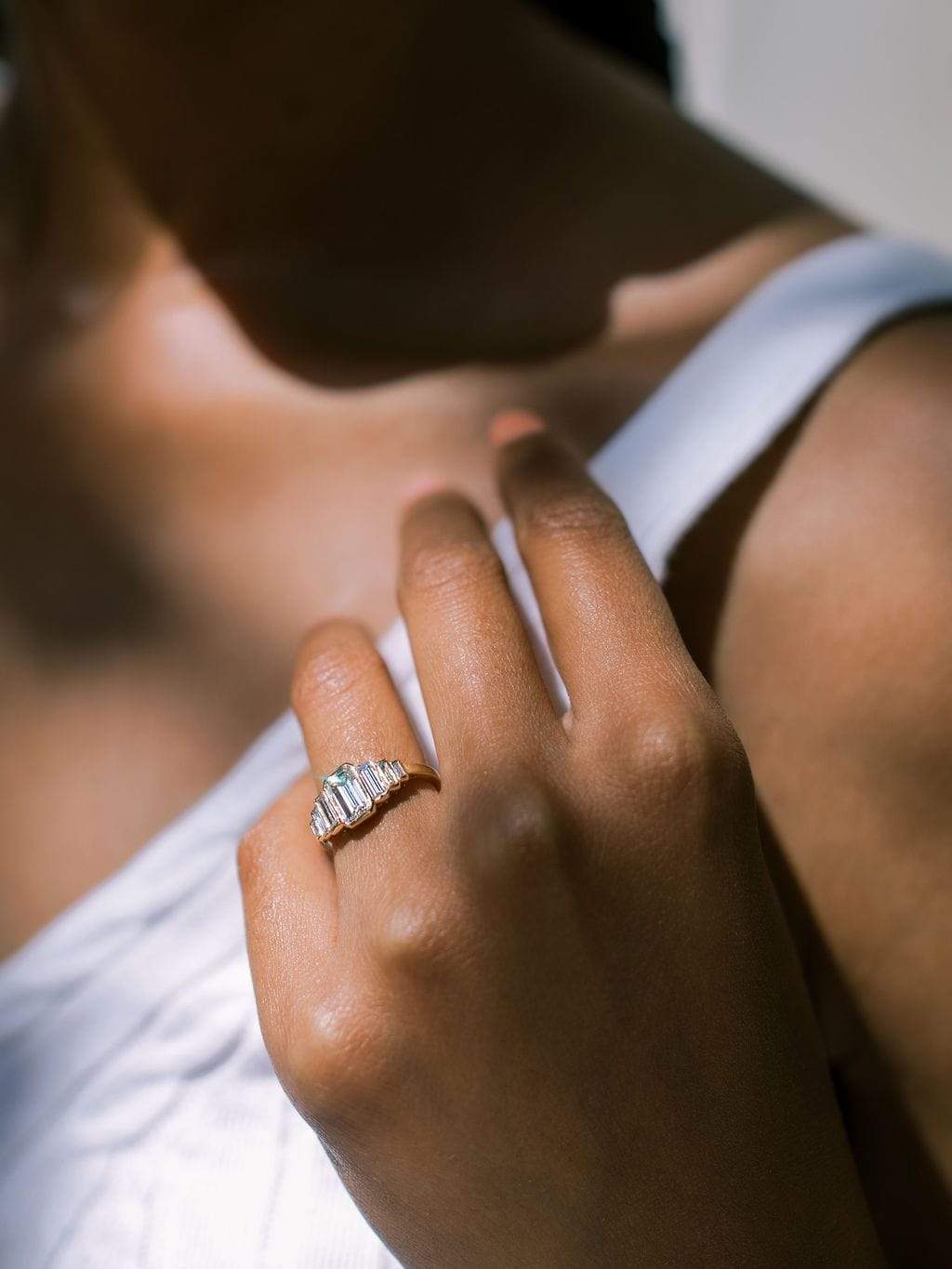 7 Stone Emerald Cut Diamond Engagement Ring