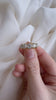Inspired by an antique piece, this half hoop borrows themes from the Victorian Era. Antique diamonds span the finger in this butter-smooth golden number that makes for a timeless engagement ring or a stunning piece for any finger.