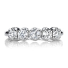 The Andria Band 0.59 is an AB original design made right here in NYC. The ring centers 5 Old European Cut diamonds totaling 0.59 carats of H-I color, VS-SI clarity. The stones are in a platinum setting. The ring is currently size 4.5 and can be resized!