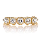 The Andria Band 0.84 is a VB original design made right here in NYC. The ring features 5 old mine cut diamonds of approximately J-K-L color, VS-SI clarity. The diamonds combine for 0.84 carats and are collet-set in an 18 karat yellow gold setting. The ring is currently size 5.5 and can be resized!
