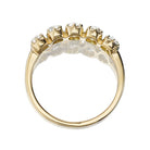 The Andria Band 1.01 is a VB original design made right here in NYC. The ring features 5 old mine cut diamonds of approximately J-K color, VS-SI clarity. The diamonds combine for 1.01 carats and are collet-set in an 18 karat yellow gold setting. The ring is currently size 6.5 and can be resized!