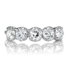 The Andria Band 1.86 is an AB original design made right here in NYC. The ring features five Old Mine cut diamonds of approximately I-J color, VS-SI clarity. The diamonds combine for 1.86 carats and are collet-set in a platinum setting. The ring is currently size 6.5 and can be resized!