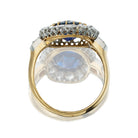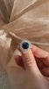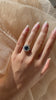A deep blue sapphire contrasts beautifully with her halo of bright and white antique diamonds in this stunning antique piece. We love her two-tone design and full finger coverage for a chic cluster ring that will only get better with time.