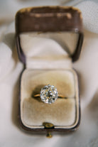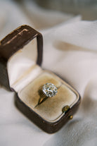 Antique rings like the Ivara ring are what we live for! A gorgeous, chunky, warm old mine cut diamond shines in its whimsical and delicate antique two-tone setting. This diamond has all the "chunk" and floral facets that we love to see in an OMC. The multitude of prongs, dainty band, and use of mixed metals are some of our favorite antique details - all coming together to make this one stunner of a ring.