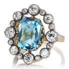 Antique Aquamarine and Diamond Cluster Edwardian Engagement Ring