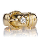 Antique Belt Buckle Ring with Old Mine Cut Diamond Center Stone