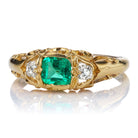 Antique Colombian Emerald and Diamond Ring in 18kt Yellow Gold