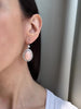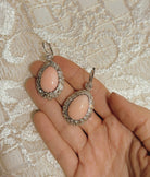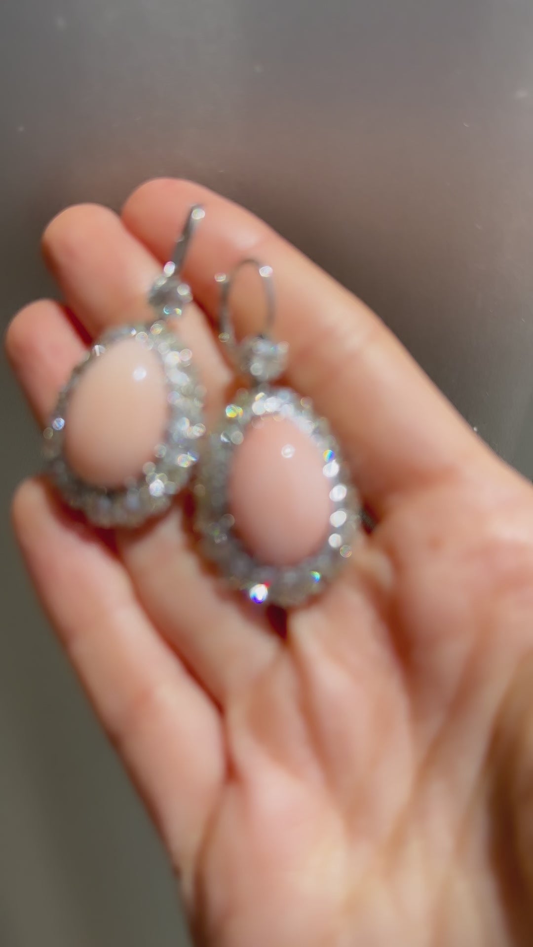 The Aldana earrings are authentic vintage coral and diamond earrings from the Edwardian Era circa 1910. Each earring features a natural coral surrounded by a halo of 20 Old Mine cut diamonds of mostly O-P color (but ranges from M-QR), VS-SI clarity and combining for approximately 2.00 carats each. An additional Old Mine cut diamond of approximately M-N color, VS-SI clarity is set above the drop, both combining for 1.08-carats. The stones are all prong set in a platinum setting with platinum clasps.