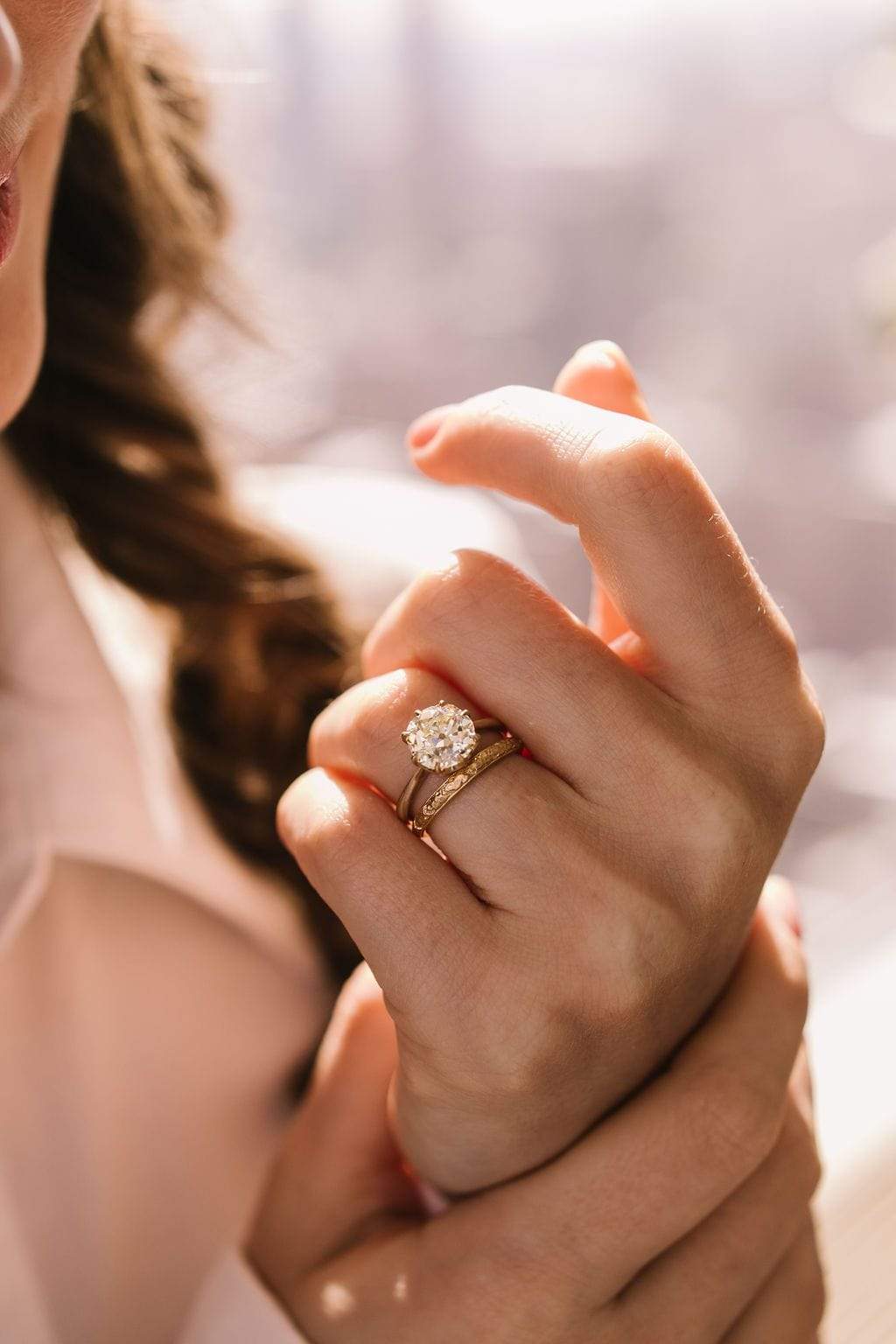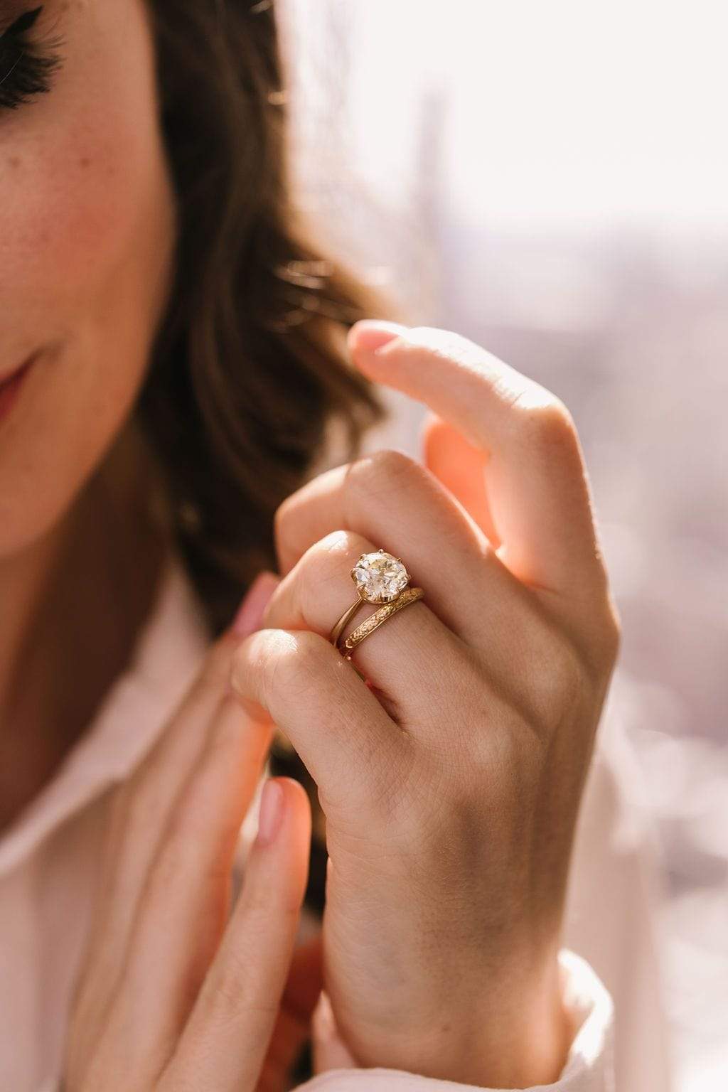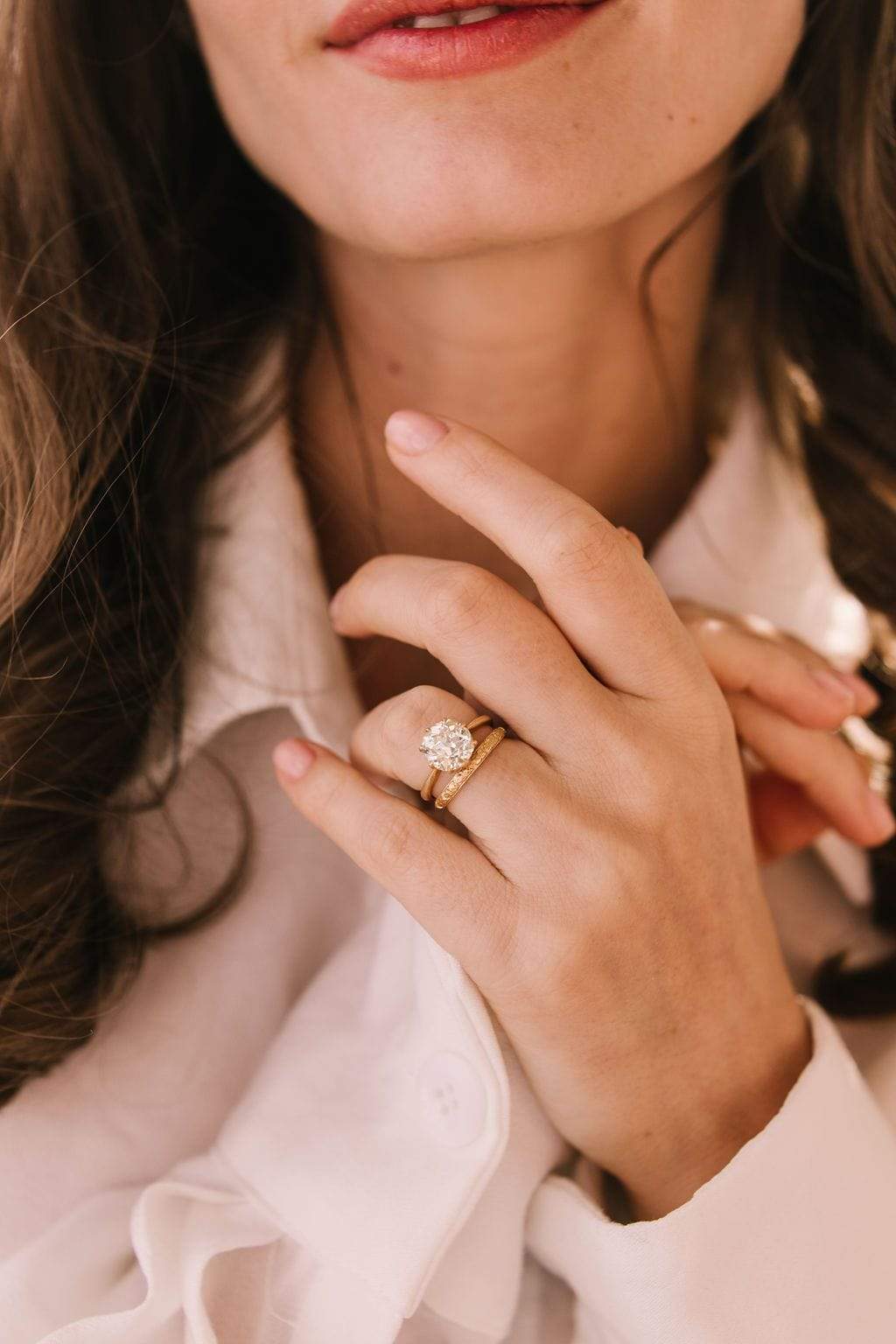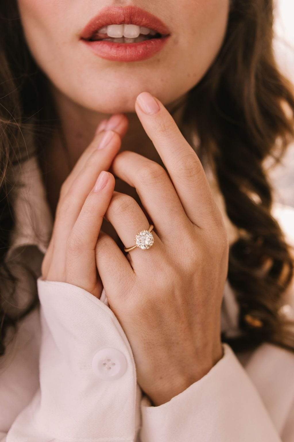 A timeless, crisp, and clean setting that beautifully highlights the chunky + warm antique diamond! Set super low and with a taper that adds a little drama and elegance!