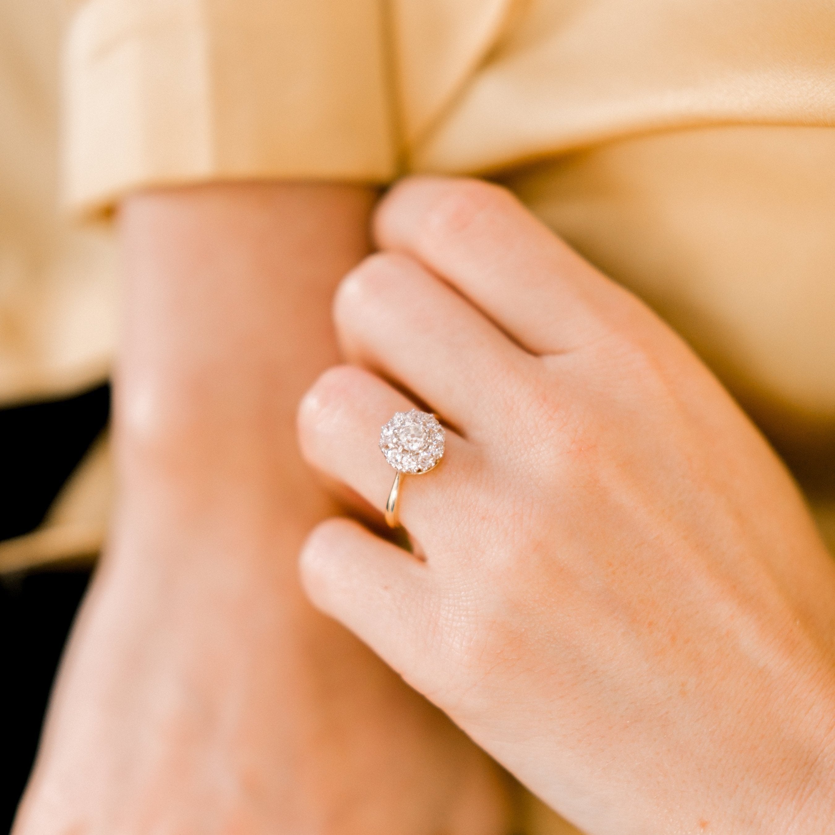 Antique Diamond Cluster Engagement Ring Yellow Gold
