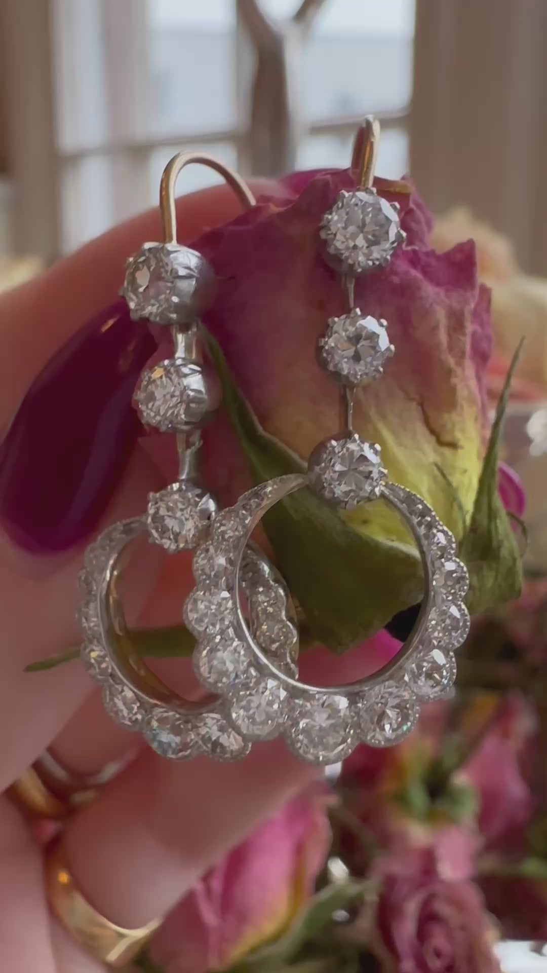A stunning everyday earring option- with elegant crescents set with beautifully faceted old cut diamond.