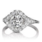 A stunning example of Midcentury Tiffany & Co. design featuring a very bright, pristine Old European cut diamond with lots of fiery, intricate faceting and a highly desirable visible culet. This cluster-style ring combines the beloved floral halo motif with an elegant shape and low, finger-hugging profile. A timeless piece of jewelry to cherish.