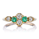 A stunning, dainty antique treasure- this emerald and diamond combination adds a uniquely beautiful detail to the piece. Perfect for those looking to add a touch of color to their collection.