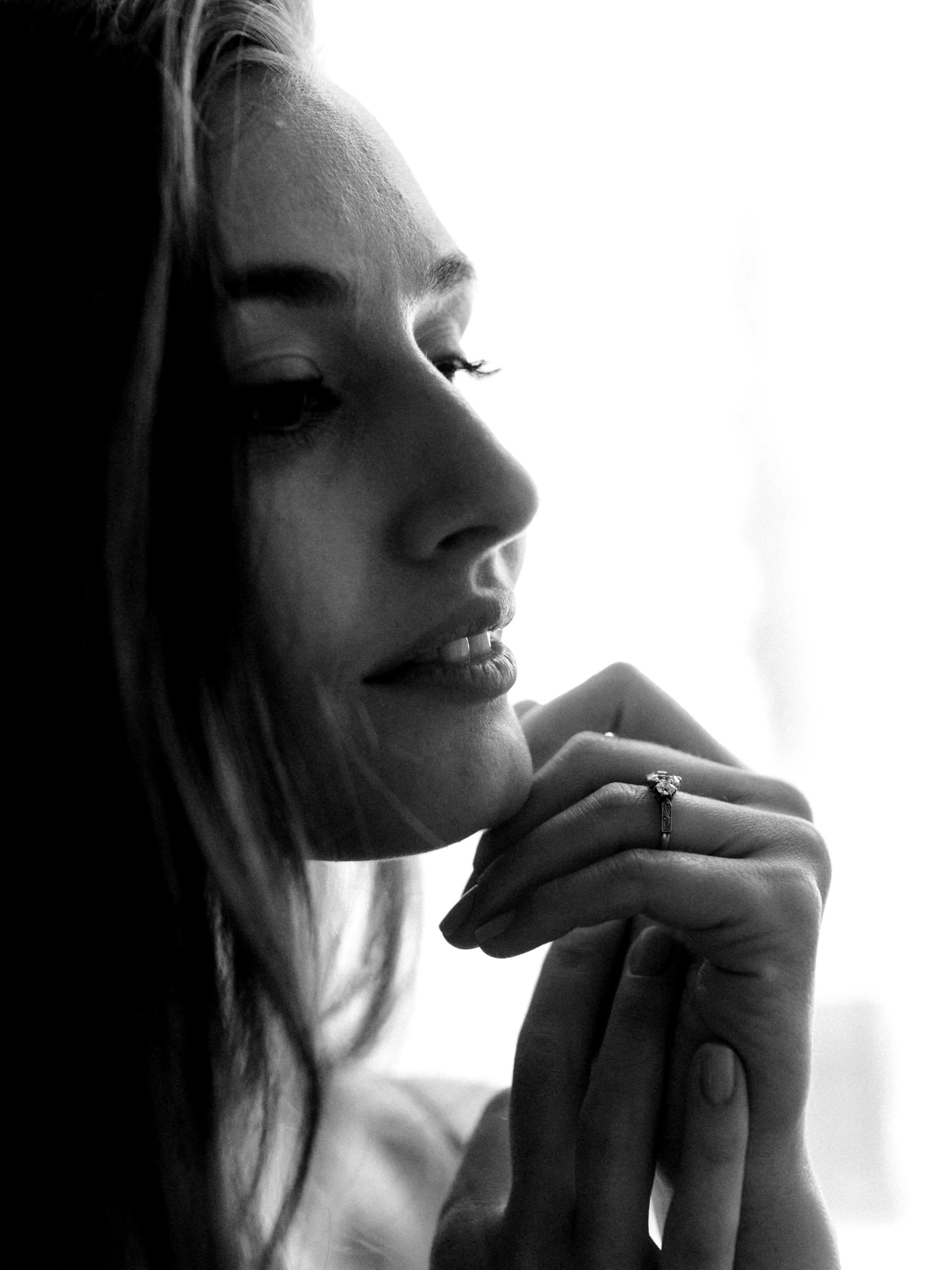 A gorgeous three stone for a great price! The diamonds center diamond in this ring is absolutely stunning and a warm contrast to the bright white side stones! The stones spread the finger beautifully and the ring is very low profile!