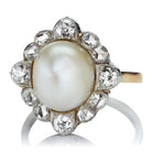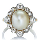 Antique Natural Saltwater Pearl and Diamond Cluster Two-Tone Ring